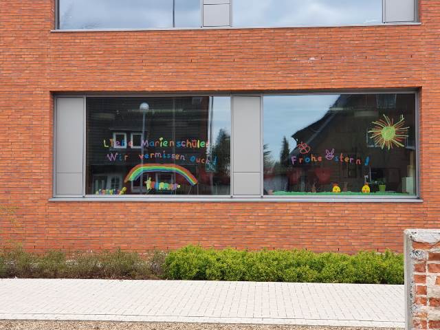 Wir von der Notbetreuung haben schöne Sachen gemacht. Gestern und heute haben wir die Fensterscheiben mit Ostereiern, Hasen und Küken bemalt. Mit fleißigen Lehrern haben wir auch gelernt. Täglich haben wir 1 Stunde Mathe und Deutsch. Es gab auch Regeln, aber es gab auch viele Sachen, die man machen durfte. Die OGS findet auch statt, da spielt man mit den Betreuern. Es macht sehr viel Spaß.