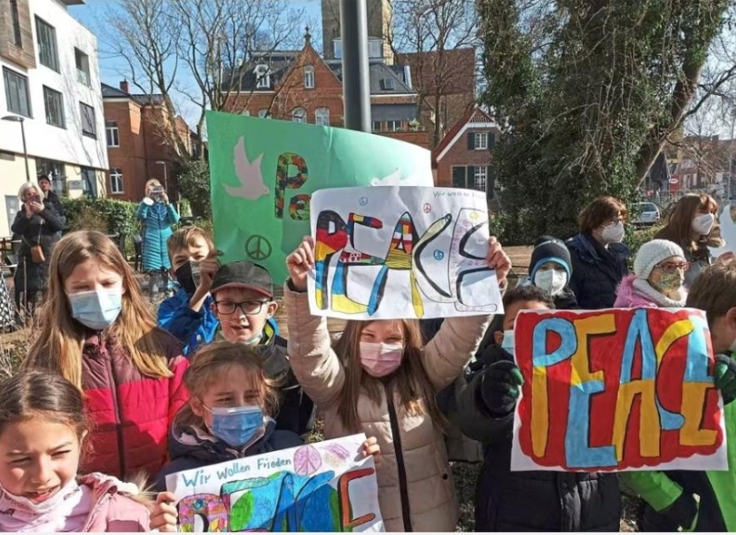 Am 16.3.2022 veranstalteten wir Kinder der 3. Und 4. Klassen der Mariengrundschule einen Friedensmarsch. Wir hören überall von dem Krieg in der Ukraine und wollten damit ein Zeichen für den Frieden setzen. Wir marschierten zum städtischen Rathaus du sangen dabei Friedenslieder. Dort wartete der Bürgermeister, Dietrich Aden, auf uns. Die Klassensprecher übergaben für jede Klasse der Schule eine gemalte oder gebastelte Friedenstaube und Johan, der Leiter des Schülerparlaments, überreichte ihm ein großes Plakat. Wir sangen auch dort unser Friedenslied Havenu Shalom Alechem, Frau Gutzmann begleitete uns auf der Gitarre. Dann zogen wir weiter zum Niederort, bildeten einen großen Kreis und sangen gemeinsam das Lied „Frieden für die Kinder“. Danach ging es durch die Stadt zurück zur Schule. Es war ein tolles Gefühl gemeinsam mit allen zu singen. Wir hoffen, dass viele Menschen und gesehen und gehört haben!